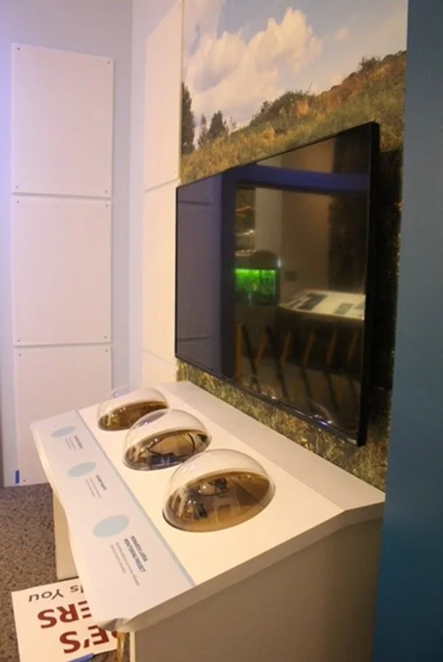 One of the projects that I was a given the opportunity to help with was building the exhibit “Citizen Science” an exhibit built to promote children to incorporate in the documentation of scientific data in their very own back yard. I helped to design a section that was accessible to the blind. I drew three different subjects that could be found in a local NC backyard, once you touch them on the metal plate the 3d model lights up and a movie starts to play on the screen above about that local animal.